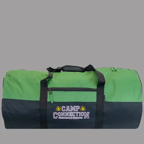 The Camp Connection 'Double Tough' Camp Duffel has been designed and built with the Summer Camper in mind. Heavy fabric, reinforced handles and a big heavy zipper make for an easy to haul, high volume duffel bag at a great price.